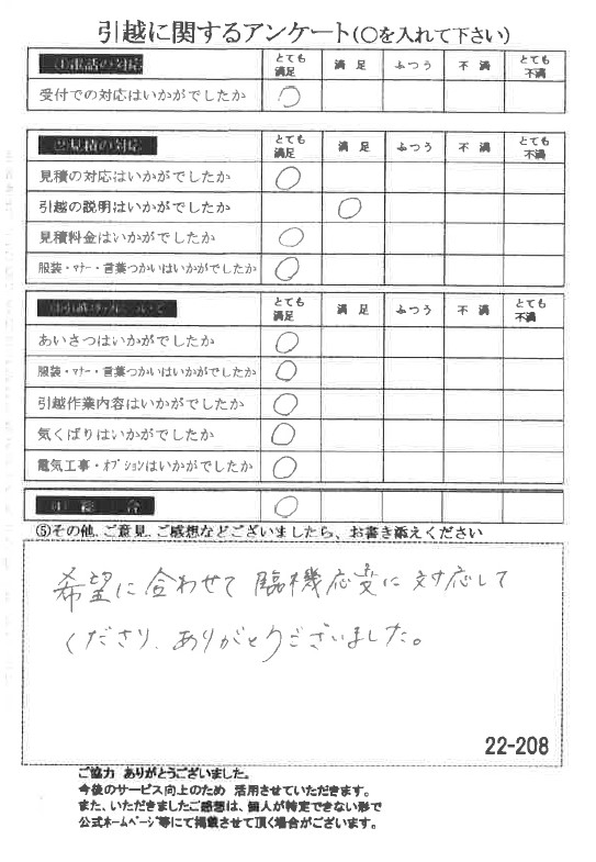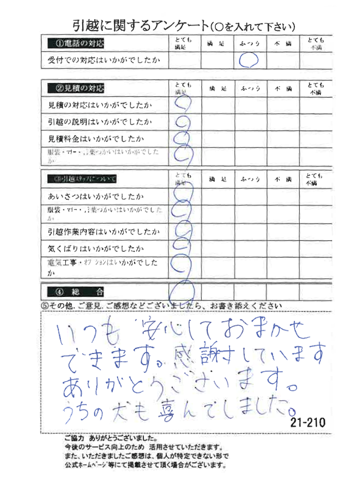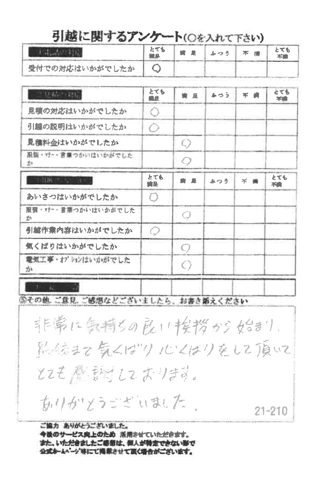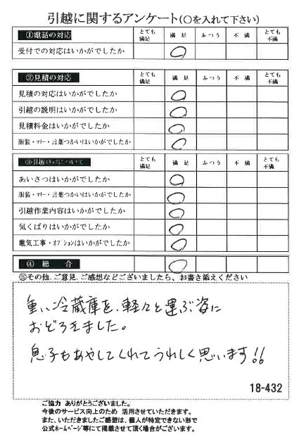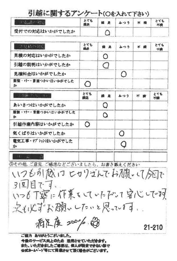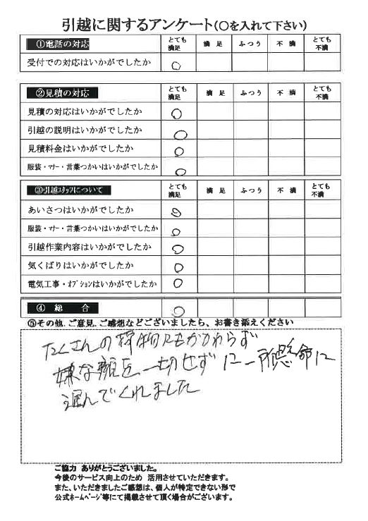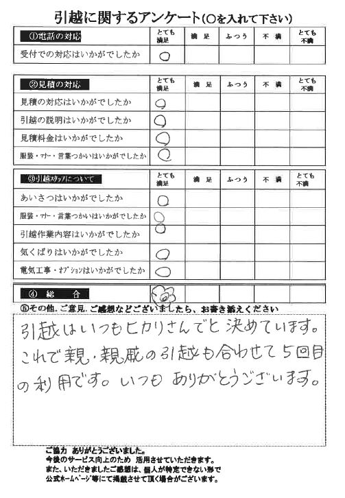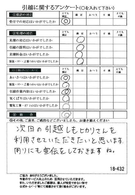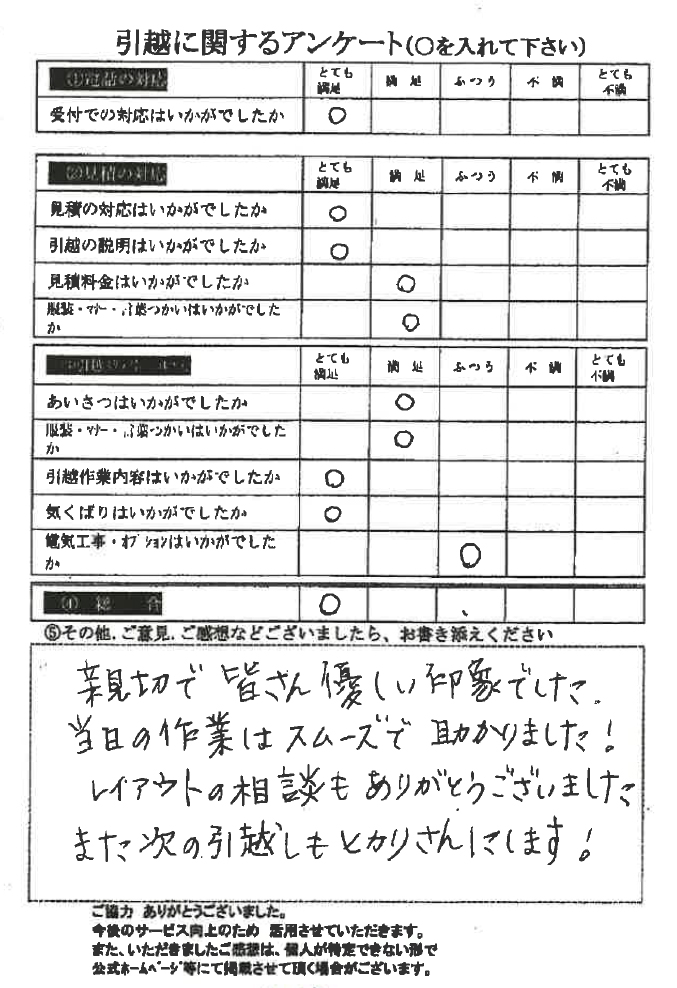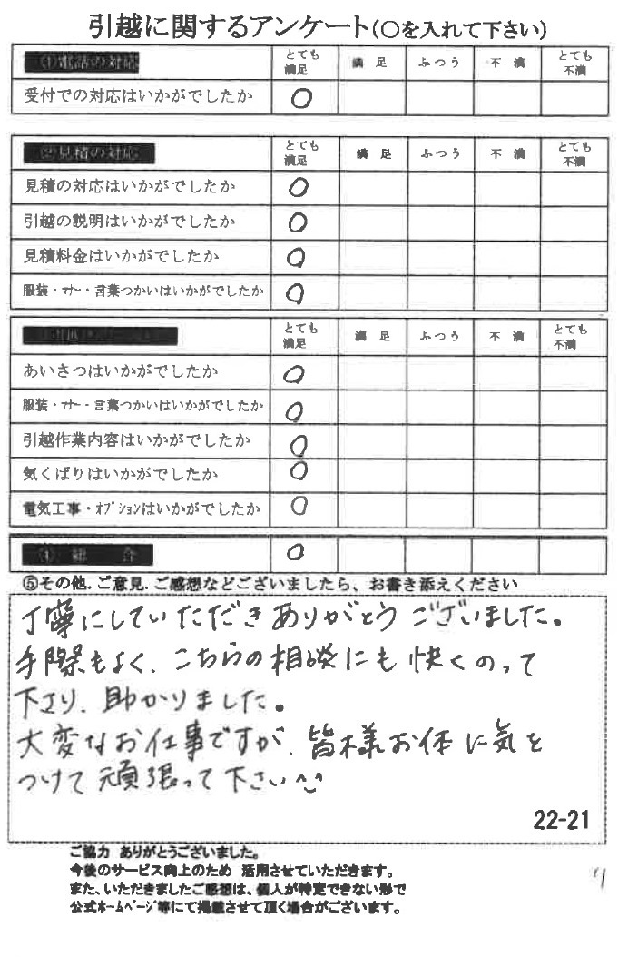 | 感想ハガキ | 引越料金 | 引越地域 |