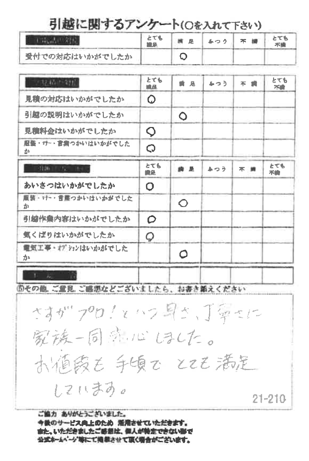 安いだけではダメ、高いのもダメ、人生数回しかないお引越しを大切にしたい。
