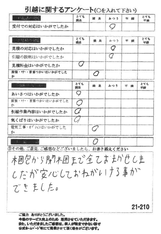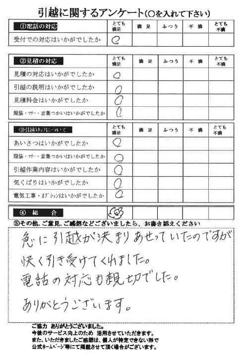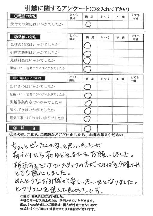 | 感想ハガキ | 引越料金 | 引越地域 |