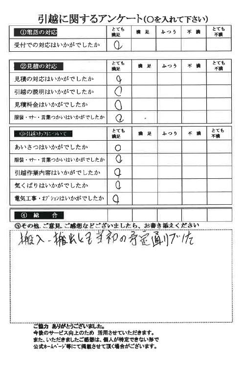 | 感想ハガキ | 引越料金 | 引越地域 |