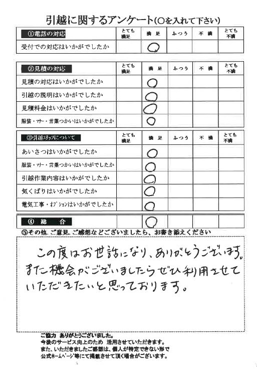 | 感想ハガキ | 引越料金 | 引越地域 |