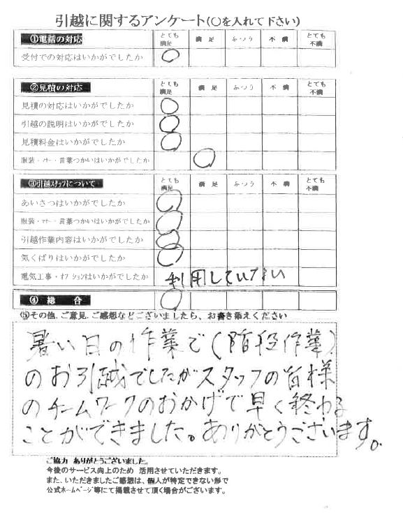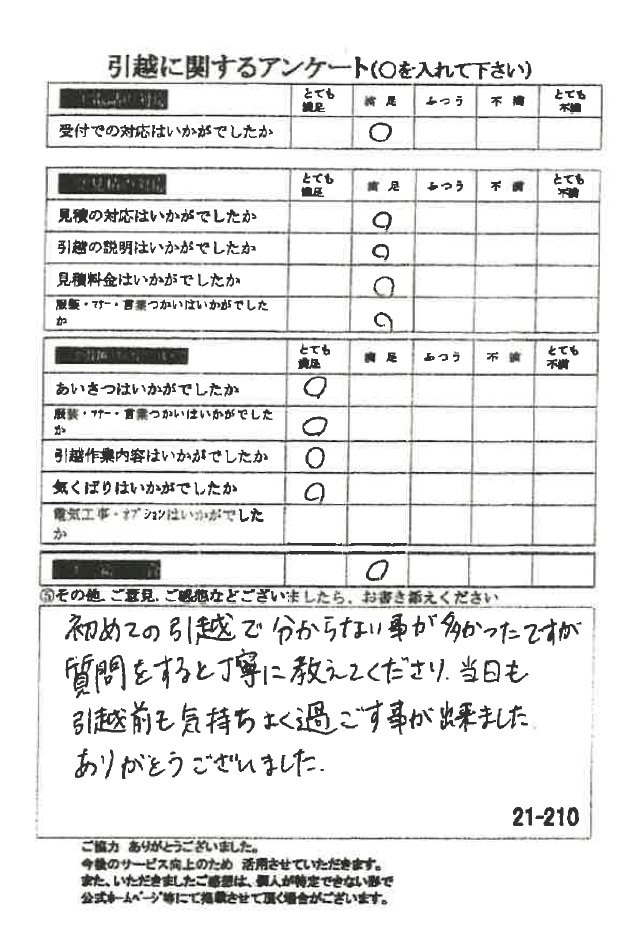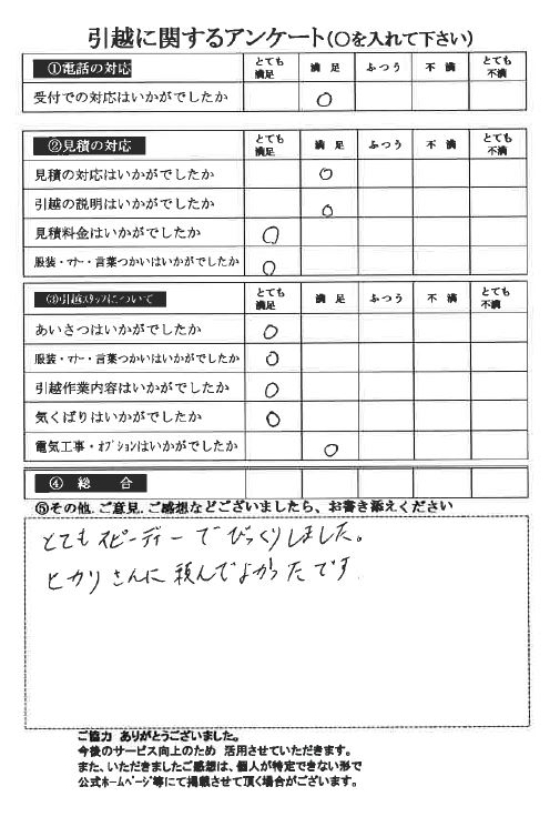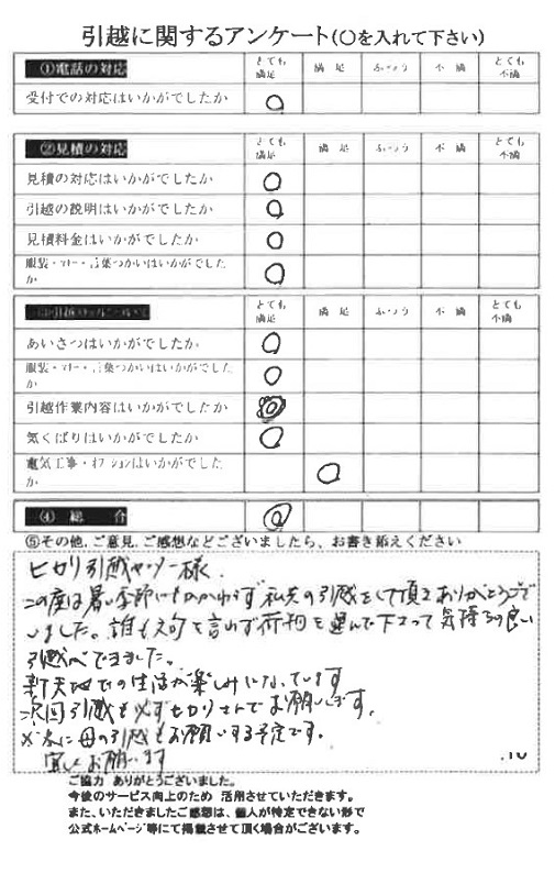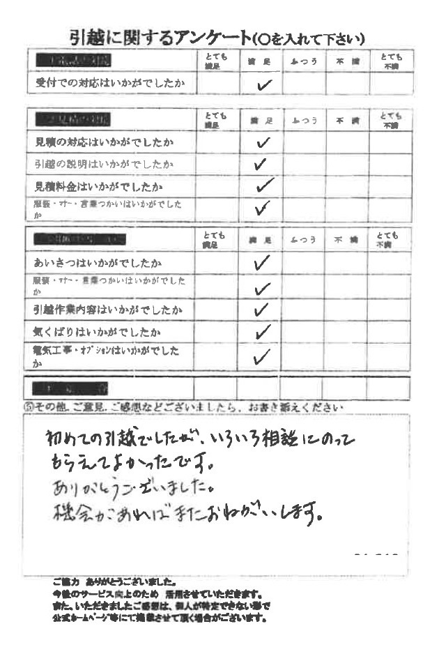 | 感想ハガキ | 引越料金 | 引越地域 |