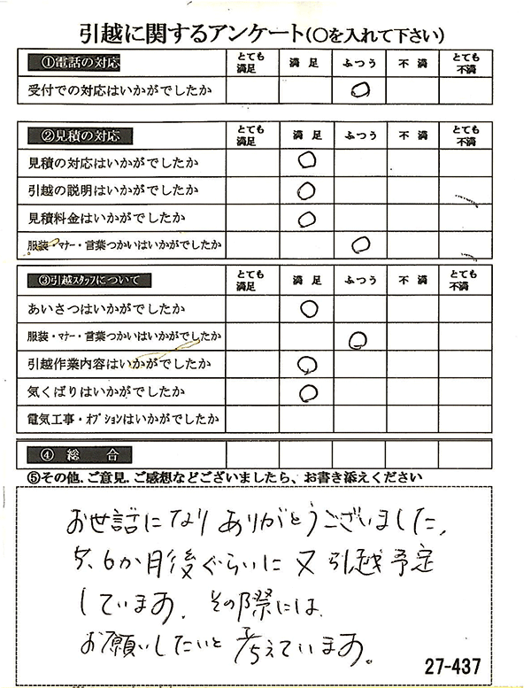 また引越する際には、お願いしたいと思います。