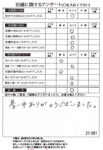 この度は数ある引越業者の中から当社をお選びいただき誠に有難うございました。